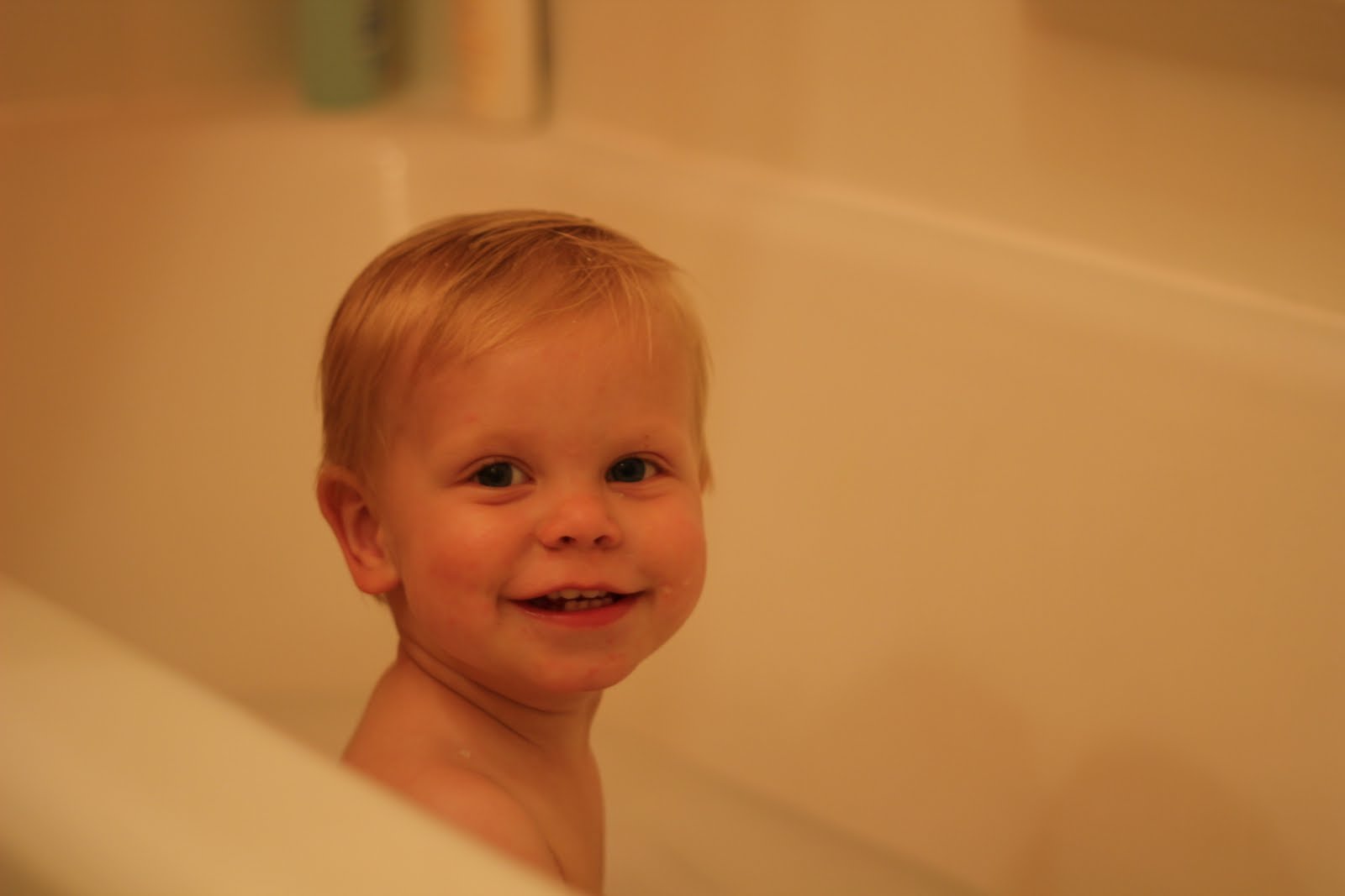 Logan's first big tub bath